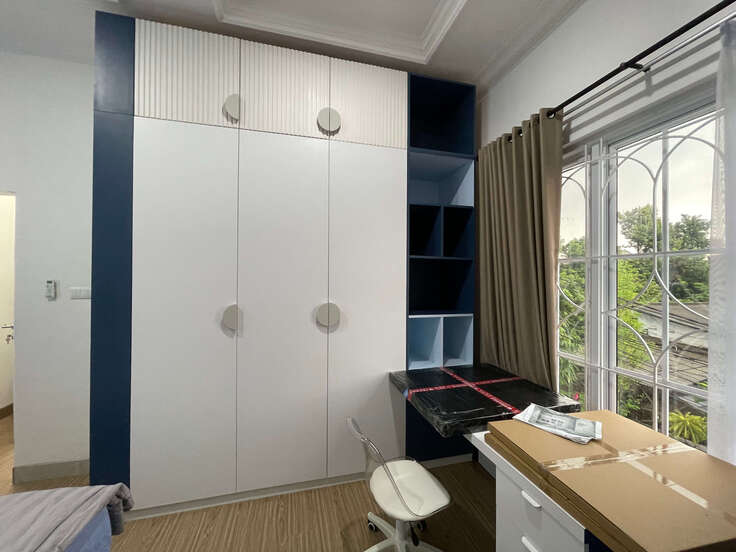 “Awalnya cuma mau ganti kitchen set, tapi akhirnya sekalian backdrop TV juga karena hasilnya bagus dan rapi banget.”
